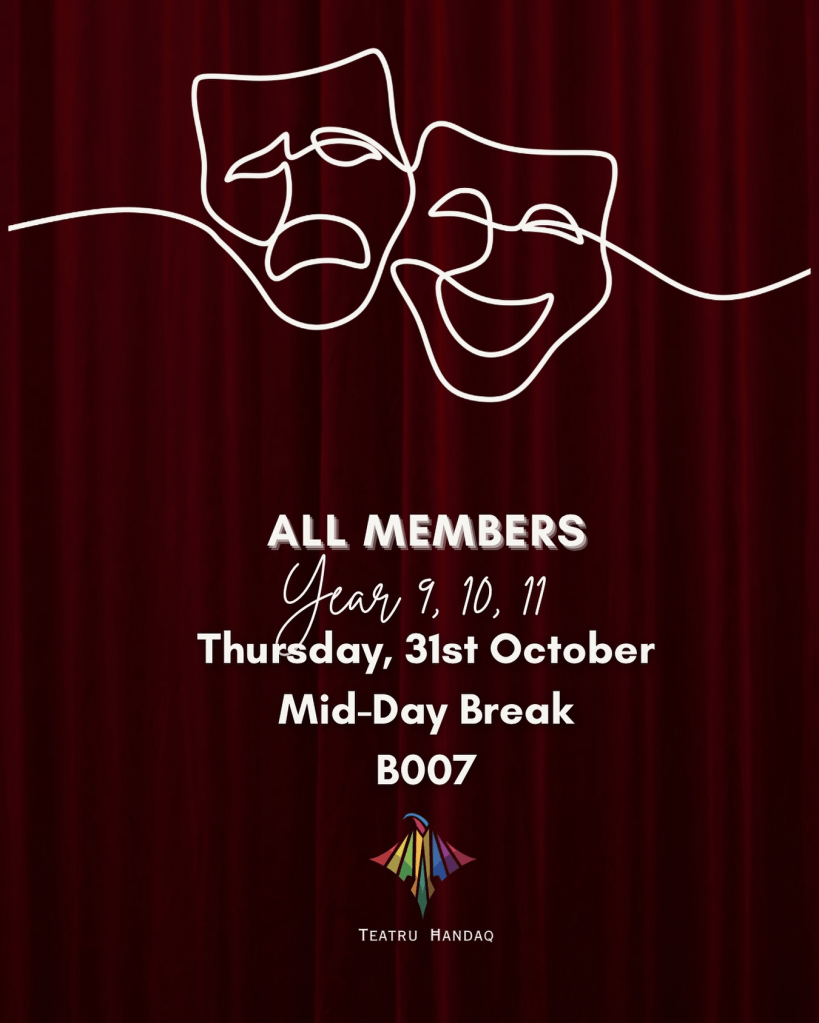 A meeting for ALL cast (including dancers) will be held tomorrow (Thursday, 30th October) during the Mid-Day break in B007. See you there!