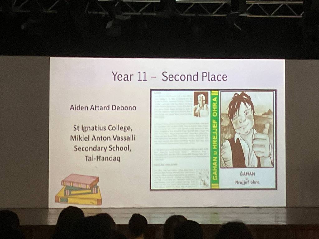 On Monday 26th May 2025, three Design and Technology students participated and represented our school in the awarding ceremony of World Book Day Competition. Participating students had to create an innovative front cover of a book 📖 they read, using any medium they wanted. Ayden Azzopardi participated in Yr 9 category and placed 2nd🥈, Leander Gatt participated in Yr 10 category and placed 2nd🥈and Aiden Attard Debono participated in Yr 11 category and placed 2nd🥈as well. Congratulations 🎉🎉🎉 to all rewarded students who showed efforts in the making of inspiring artifacts through creativity 🖌, design 📝and technology 🛠.