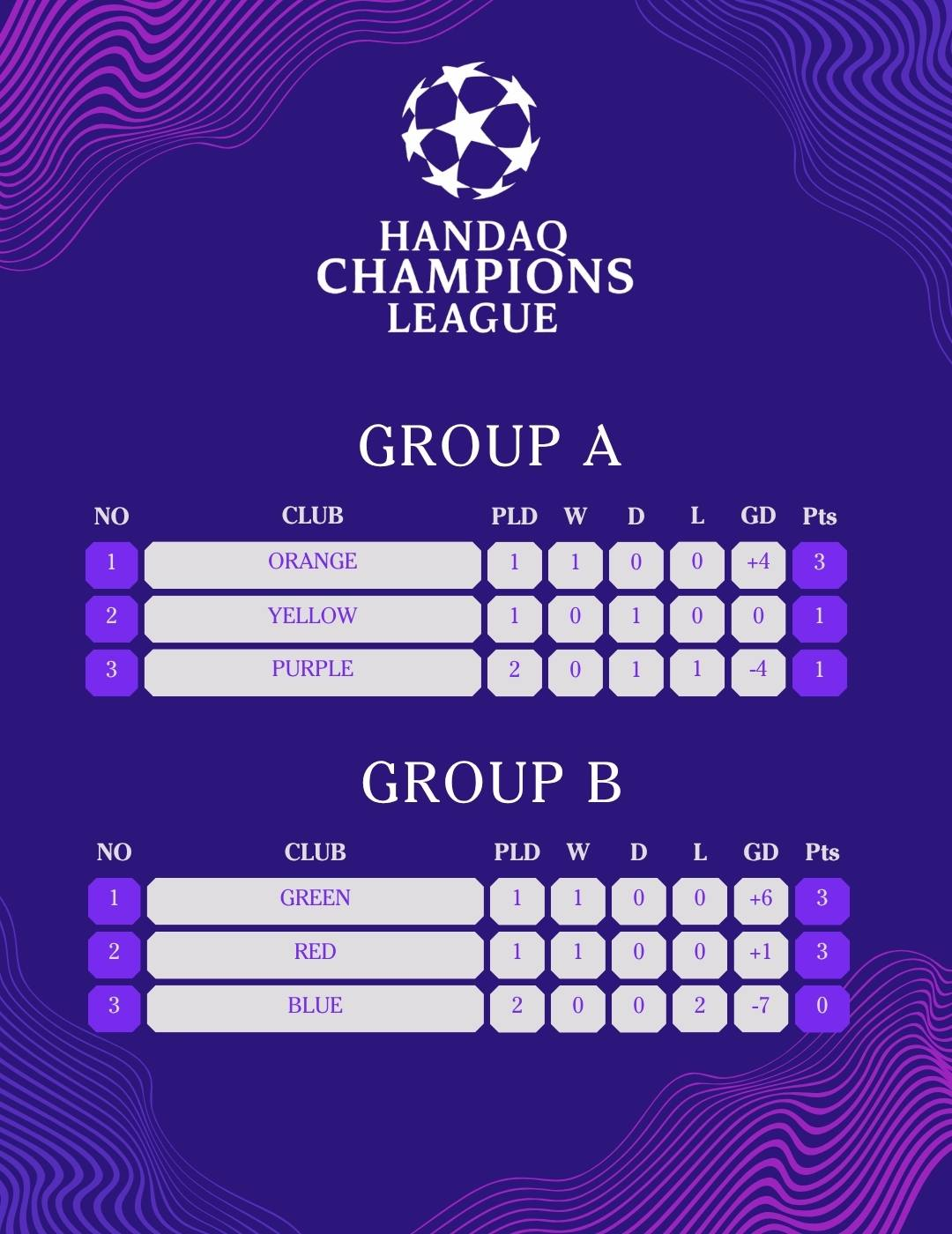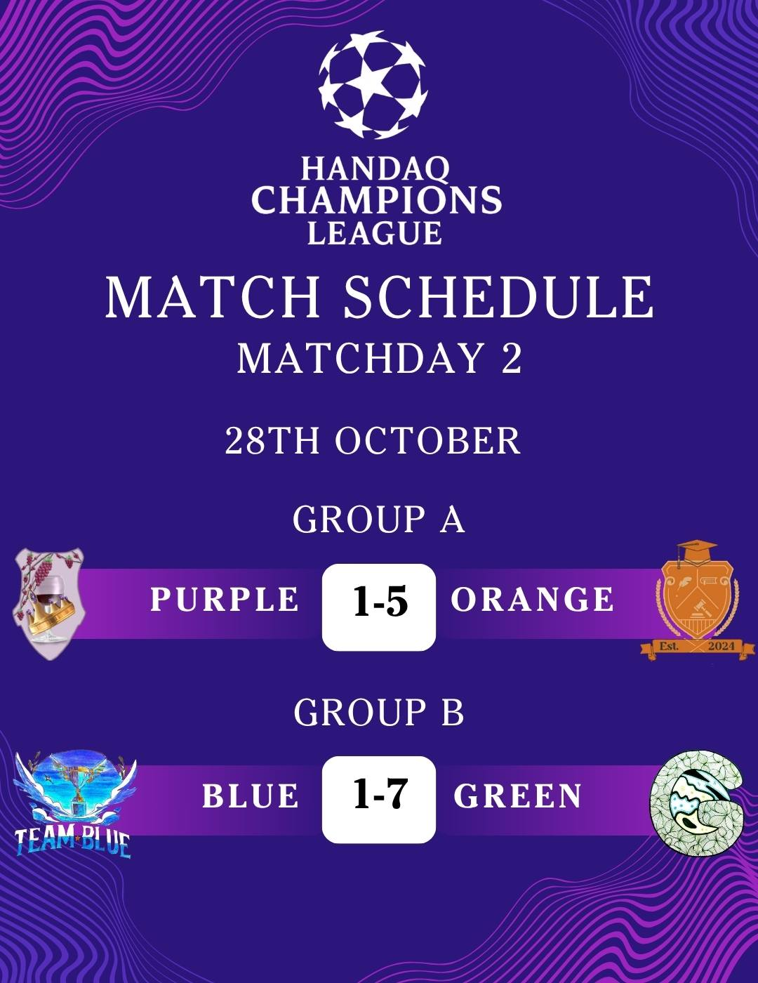 Big results in the Handaq Champions League with Blue and Purple teams still looking for their first win. 🏆