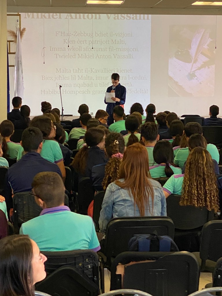 Bdejna b’whole school assembly, fejn wara li ġie kantat l-Innu Malti, ittieħed ritratt mill-ajru bl-istudenti jiffurmaw il-bandiera Maltija b’karti kkuluriti bojod u ħomor.