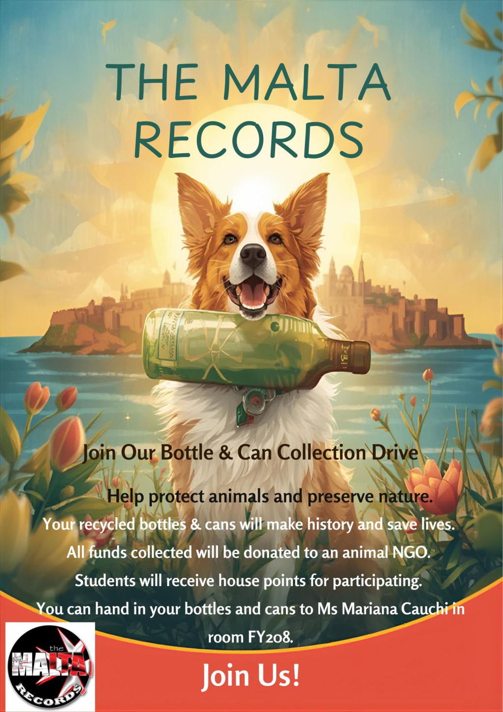 🇲🇹 Qed niġbru fliexken u lattini biex nagħtuhom lil NGO tal-annimali 🐾, u kull student li jipparteċipa se jirċievi house points! 💙💛❤️💚🧡💜💪