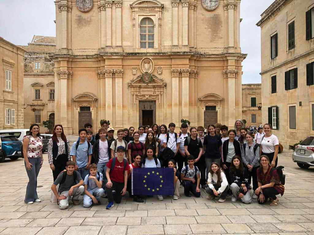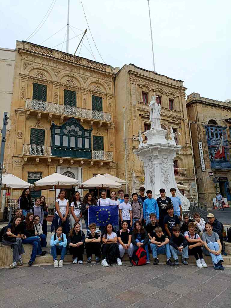 🇲🇹 Mit-Tnejn 17 sal-Ä imgħa 21 ta’ Novembru, grupp ta’ 23 student flimkien ma’ 2 edukaturi u l-Kap tal-Iskola tagħhom mill-Ä ermanja ngħaqdu ma’ grupp ta’ 12-il student Malti mill-iskola Mikiel Anton Vassalli, Kulleġġ San Injazju, Skola Sekondarja tal-Ħandaq, Ħal Qormi biex flimkien jesploraw il-kultura, l-istorja u l-valuri Ewropej. Il-programm ta’ matul din il-ġimgħa għaqqad ĹĽjarat kulturali ma’ diskussjonijiet sinifikanti u ppermetta lill-parteÄ‹ipanti jitgħallmu minn xulxin filwaqt li jibnu ħbiberiji b’saħħithom.