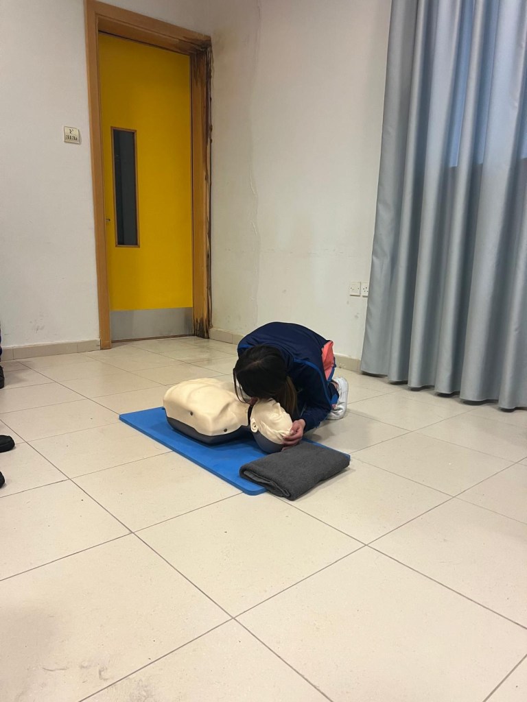 During this session, students learnt essential life-saving skills including CPR, how to use an AED, the recovery position and first aid for choking.