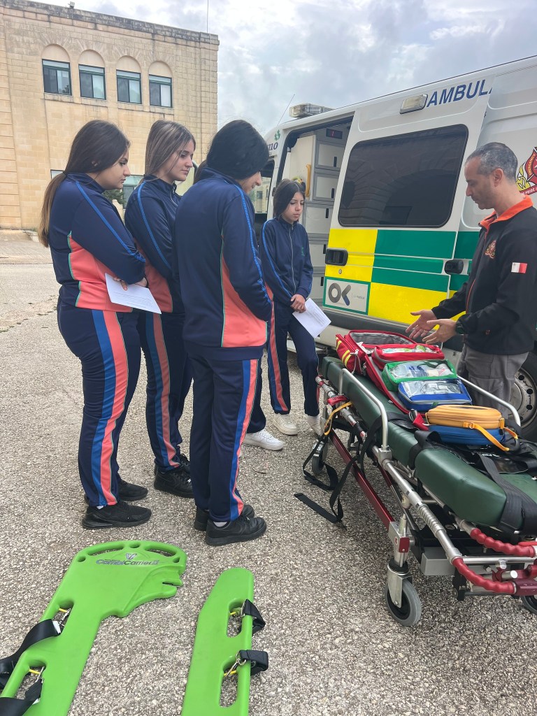 🇲🇹 Riċentament, l-istudenti tal-Health and Social Care tal-għaxar sena ħadu sehem f’ħarġa edukattiva li tat ħarsa aktar mill-qrib lejn il-varjetà ta’ professjonijiet fil-qasam tal-infermiera. Matul iż-żjara, l-istudenti kellhom l-opportunità jiltaqgħu u jitgħallmu minn infermiera differenti, fosthom qwiebel, infermiera li kienu jaħdmu fl-ITU, infermiera li jaħdmu fl-NPICU, infermiera li jaħdmu fuq l-ambulanza, infermiera li jaħdmu ma’ persuni b’diffikultajiet ta’ saħħa mentali, kif ukoll infermiera li jieħdu ħsieb persuni bid-dimensja. L-istudenti kellhom ukoll l-opportunità interessanti li jidħlu ġewwa ambulanza u jitgħallmu aktar dwar ix-xogħol tal-professjonisti tas-saħħa f’sitwazzjonijiet ta’ emerġenza. Din l-esperjenza għenet lill-istudenti jiksbu fehim aktar profond tar-rwoli u r-responsabbiltajiet differenti tal-infermiera f’diversi oqsma tas-saħħa.