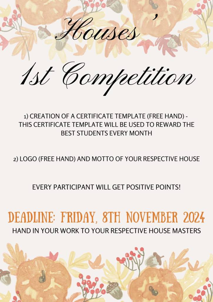 Are you ready for the inaugural houses competition!? Read below for all the details: