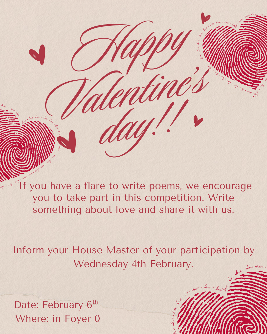 The Houses’ Baking and Poem competitions took place during the mid-day break on Valentine’s Day, bringing creativity and teamwork to the forefront. Participants showcased their baking skills with delicious treats and expressed their artistic talents through inspiring poetry. The event was a fantastic display of dedication and passion, with each house striving for excellence. A huge well done to all the participants for their hard work and to the staff for their support in making the competition a success. Let the best house win!